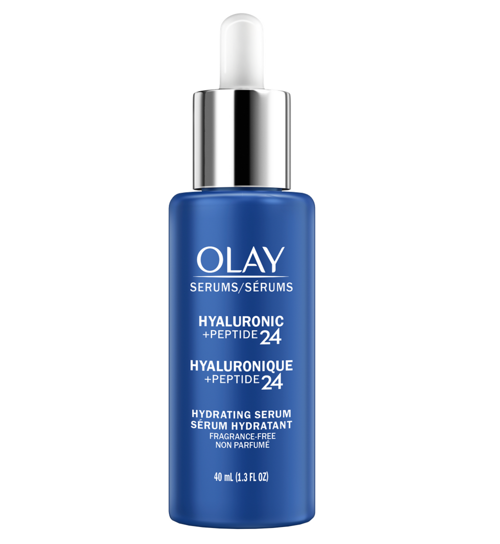 Supercharge your hydration for dewy skin with Olay’s Hyaluronic + Peptide 24 formulas. Olay Hyaluronic + Peptide 24 Serum absorbs quickly for supercharged, long-lasting hydration and dewy, glowing skin. This clean, fragrance-free, and lightweight facial serum is easy to rub in and glides under makeup without leaving behind a sticky or tacky feeling. It's crafted with powerful ingredients including Hyaluronic Acid, Niacinamide, and Peptides. To use, apply on cleansed face and neck both morning and night before moisturizer. On day 1, you will feel instant hydration that lasts all day. With two weeks of use, you will see visibly healthier-looking skin. With 1 month of use, you will see dewy and glowing skin. Olay Regenerist Hyaluronic + Peptide 24 Serum is made with dermatologist-recommended Peptides, and made without synthetic dyes, fragrances, parabens, mineral oil, or phthalates. What’s not to love about dewy, hydrated skin that glows?