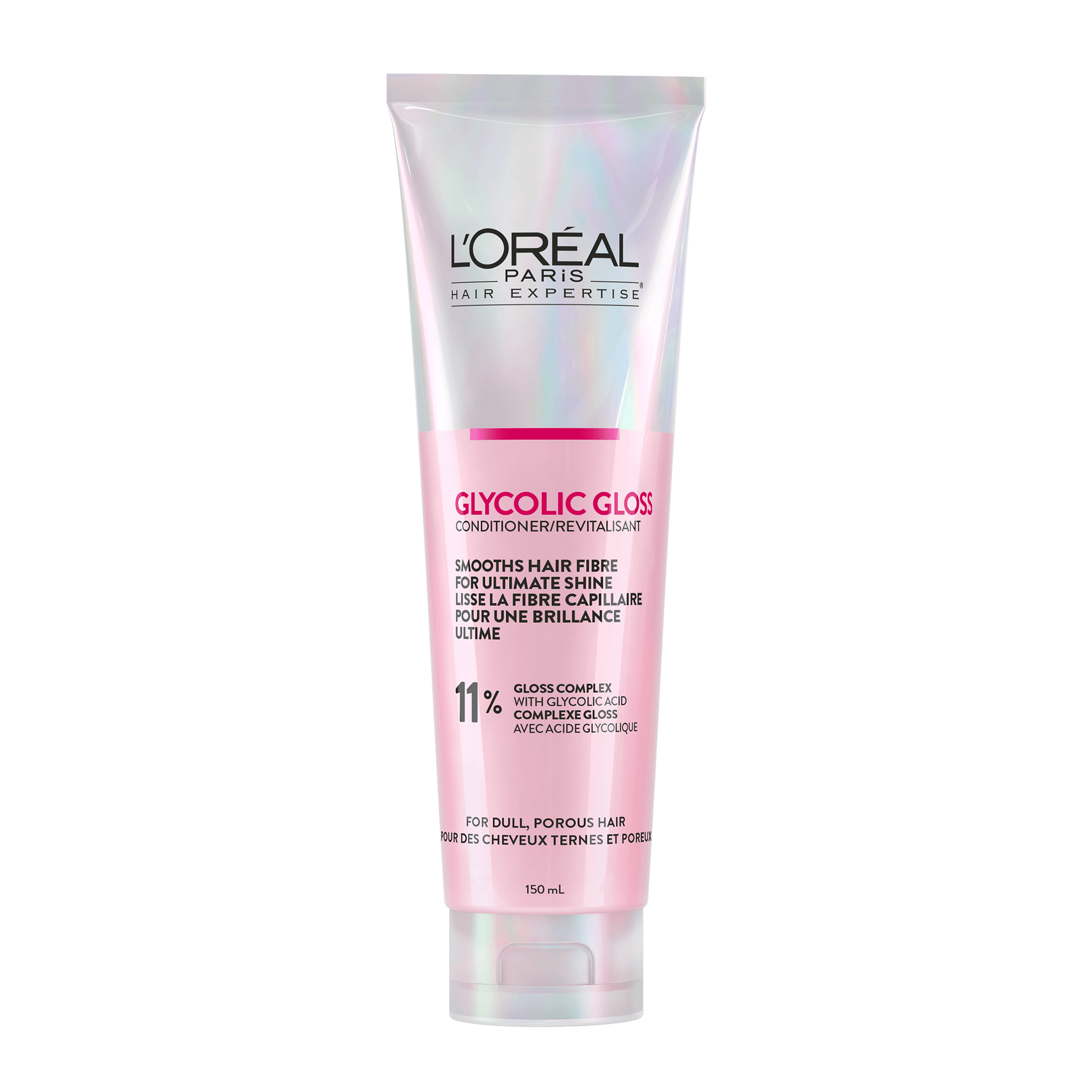 GET INTENSE GLOSSY SHINE IN JUST 5 MINUTES with the new L'Oréal Paris Hair Expertise Glycolic Gloss Shine Conditioner. This conditioner is powered by an 11% Glycolic Acid Gloss Complex that penetrates deeply into the hair fiber to improve hair quality and seal cuticles with a lasting glossy effect. Perfect for dull, porous hair, this conditioner transforms your hair, leaving it 2x shinier and 88% smoother for up to 10 washes.