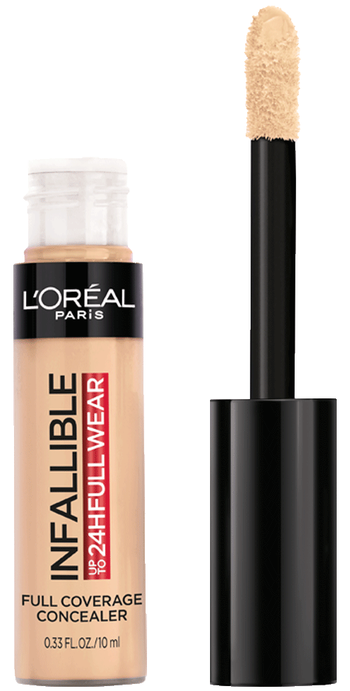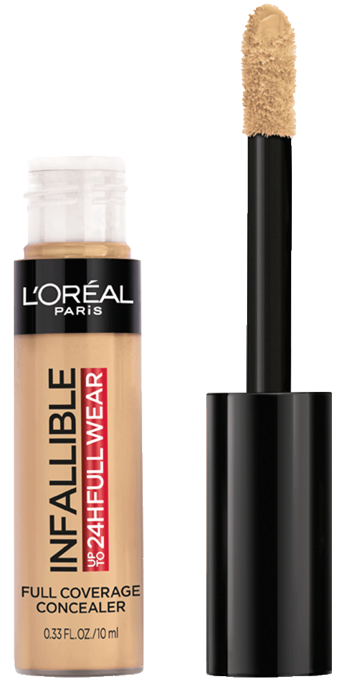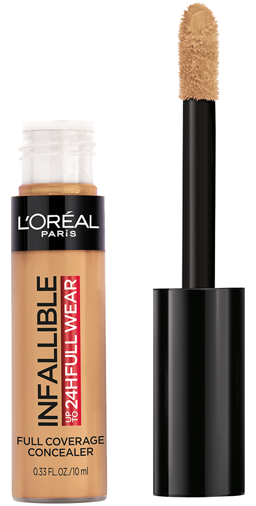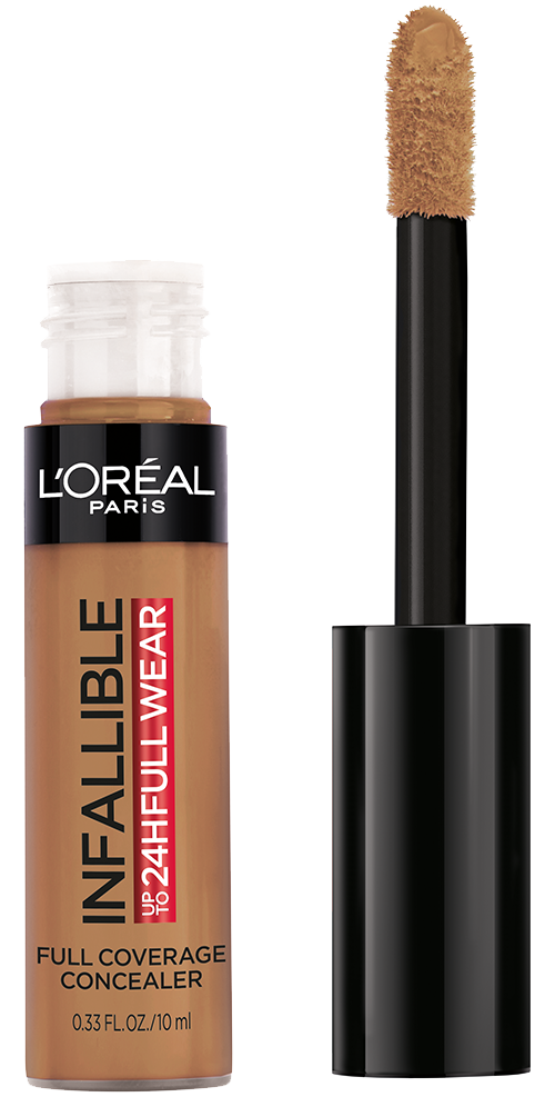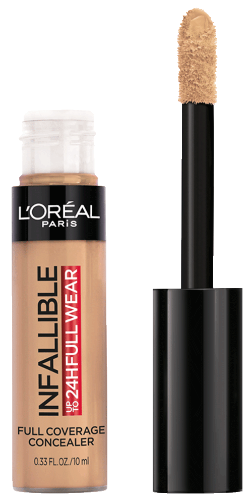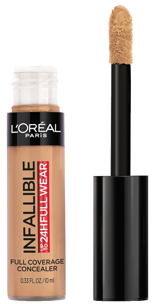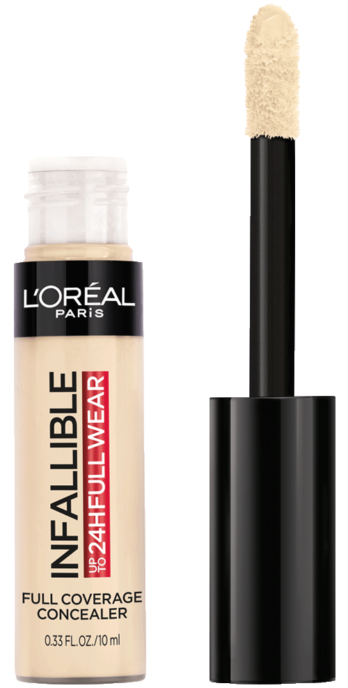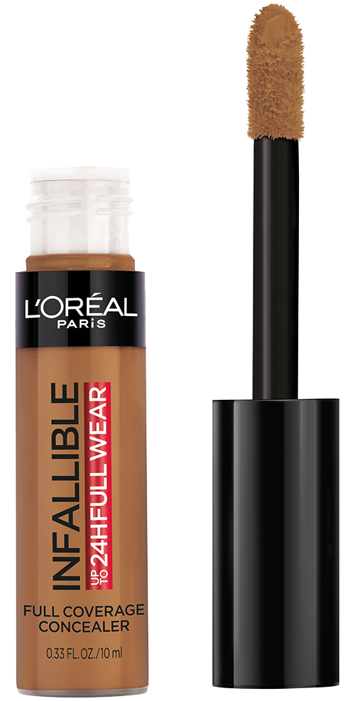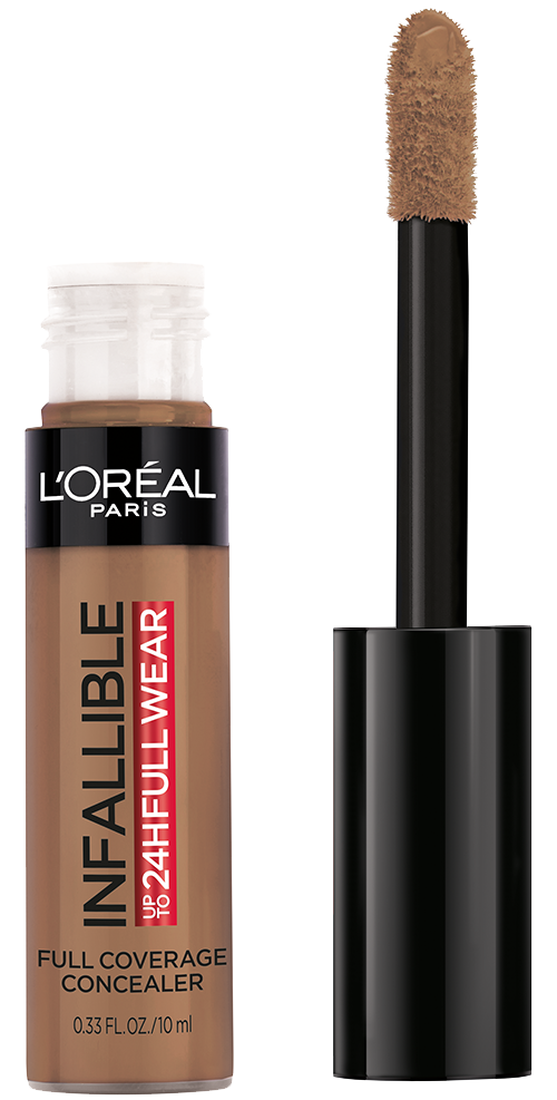 More than concealer, Full coverage matte finish for up to 24 hours - Our extra large applicator provides full coverage in just one stroke for a flawless matte finish that lasts all day. Our waterproof formula won't transfer, fade, or crease, so your full coverage look is locked in all day - The creamy texture is non-greasy and easy to apply - a little goes along way. Choose a shade that best matches your skin tone to conceal imperfections, Go 1-2 shades deeper to contour and 1-2 shade lighter to highlight and brighten. This full coverage formula completely covers imperfections, minimizes redness and scars - It can also be used on the body to minimize the appearance of stretch marks, veins, and bruises. L'Oréal Paris Infallible Full Wear Concealer in twenty five full coverage shades for every skin tone.