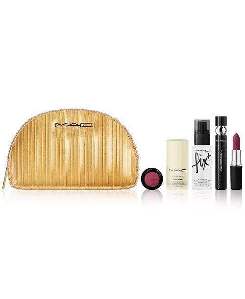 Get ready for your close-up with this limited-edition gift set of five of MAC's best-selling skincare + makeup products for eyes, lips and skin. Ready to gift in a holiday-exclusive gilded clutch bag and gold-tone packaging at a gold star value.