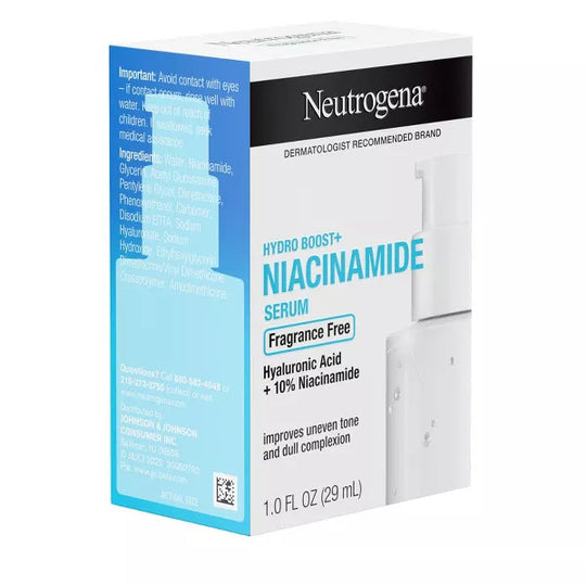 Neutrogena Hydro Boost + Niacinamide Fragrance-Free Serum in a convenient 1 fl oz gives intense hydration and skin-refining benefits, leaving your complexion smooth, radiant, and revitalized. Also, minimize the appearance of pores, and control oiliness on the face, and fine lines. For instant results, make it necessary to your skincare routine.