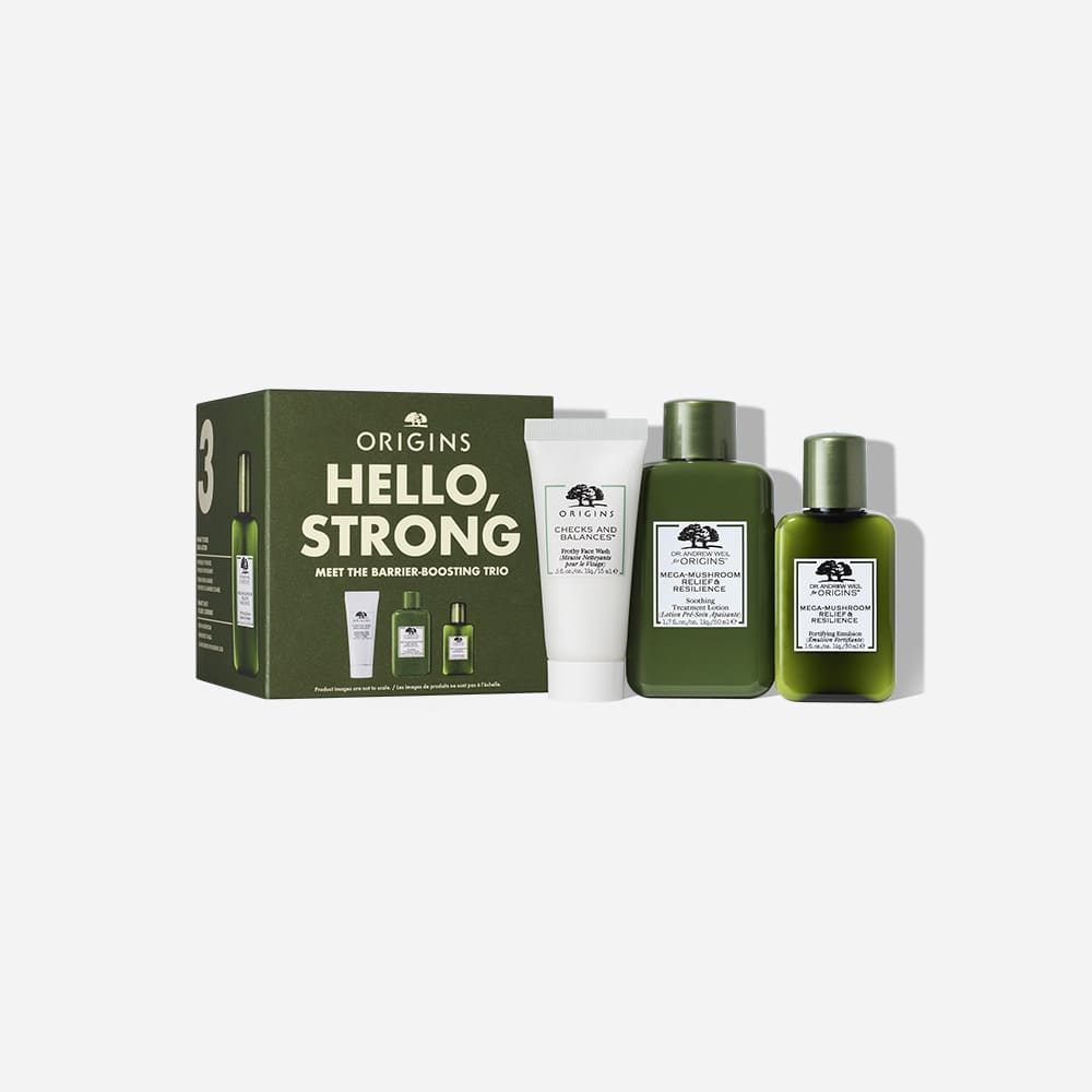 Our Mega-Mushroom discovery kit for all skin types (especially sensitive) features try-me sizes of gentle cleanser, treatment lotion and moisturizer.