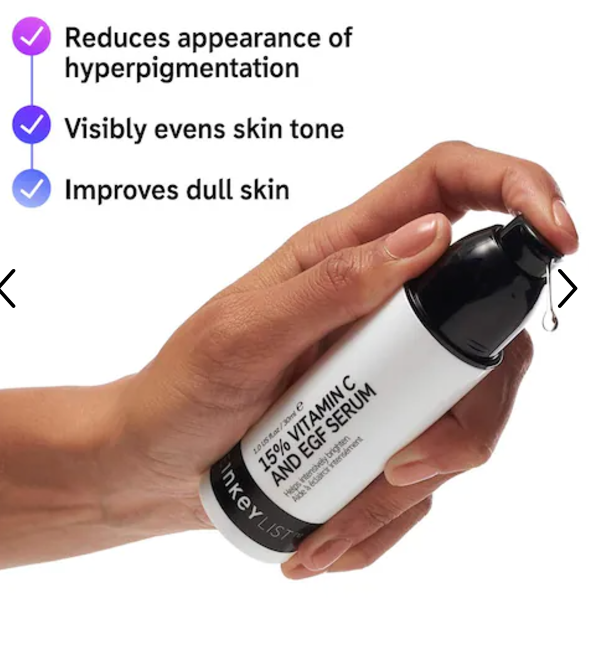 What Else You Need to Know: Supercharged skin-brightening. Powered by 15% antioxidant vitamin C and plant-based peptide EGF to deliver a double dose of brightening and rejuvenation with every use. This powerful yet gentle serum leaves skin visibly brighter and firmer-looking.